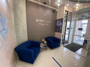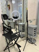 В салоне приятный интерьер в светлых тонах, удобные и оборудованные всем необходимым рабочие места, комфортная зона ожидания для клиентов с мягкими креслами, где вам предложат чашечку бодрящего кофе или ароматного травяного чая с фирменным шоколадом.